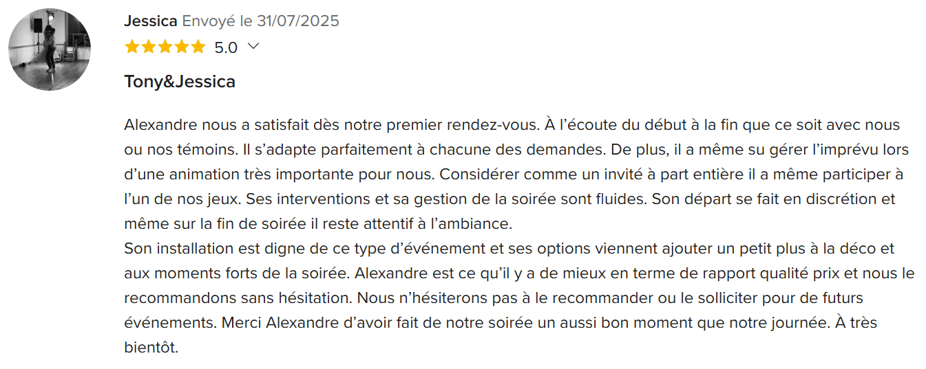 Jeune, dynamique et dotĂ© dâun excellent sens du relationnel, Alexandre17 met un point dâhonneur Ă comprendre vos envies pour concevoir une animation sur mesure.